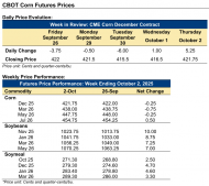 미국 연방 정부 셧다운으로 인해 주간 작황 보고서는 발표되지 못했으며 조정을 받아 옥수수 25년 12월물은 전일 대비 2센트 내린 4달러 19.75센트에 정산 마감됨